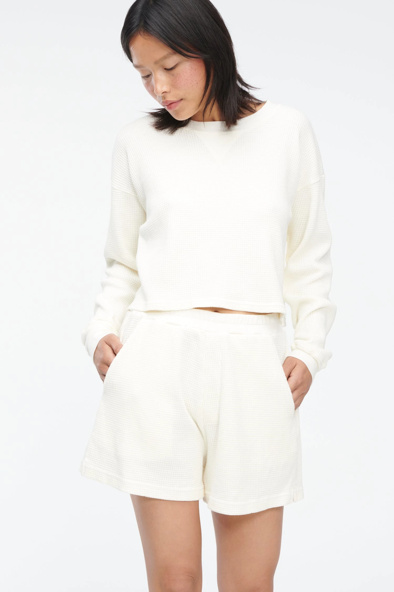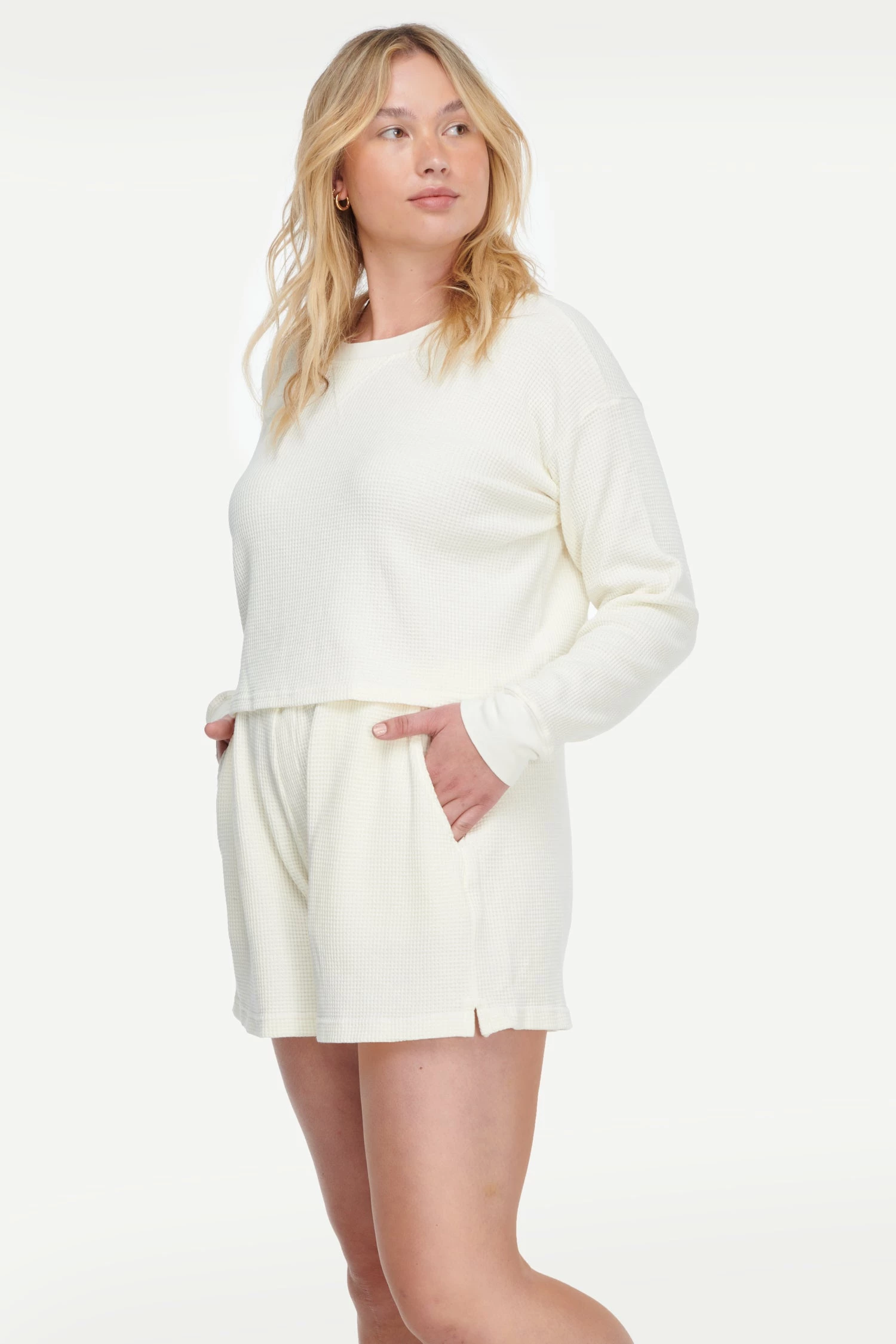 Our coziest shorts yet. Made from insanely soft Cotton Modal blend thermal knit, with elastic waistband and a boxer fit. You’ll never wanna take em off. Pair with matching Dakota Thermal for the cutest, comfiest lounge fit.