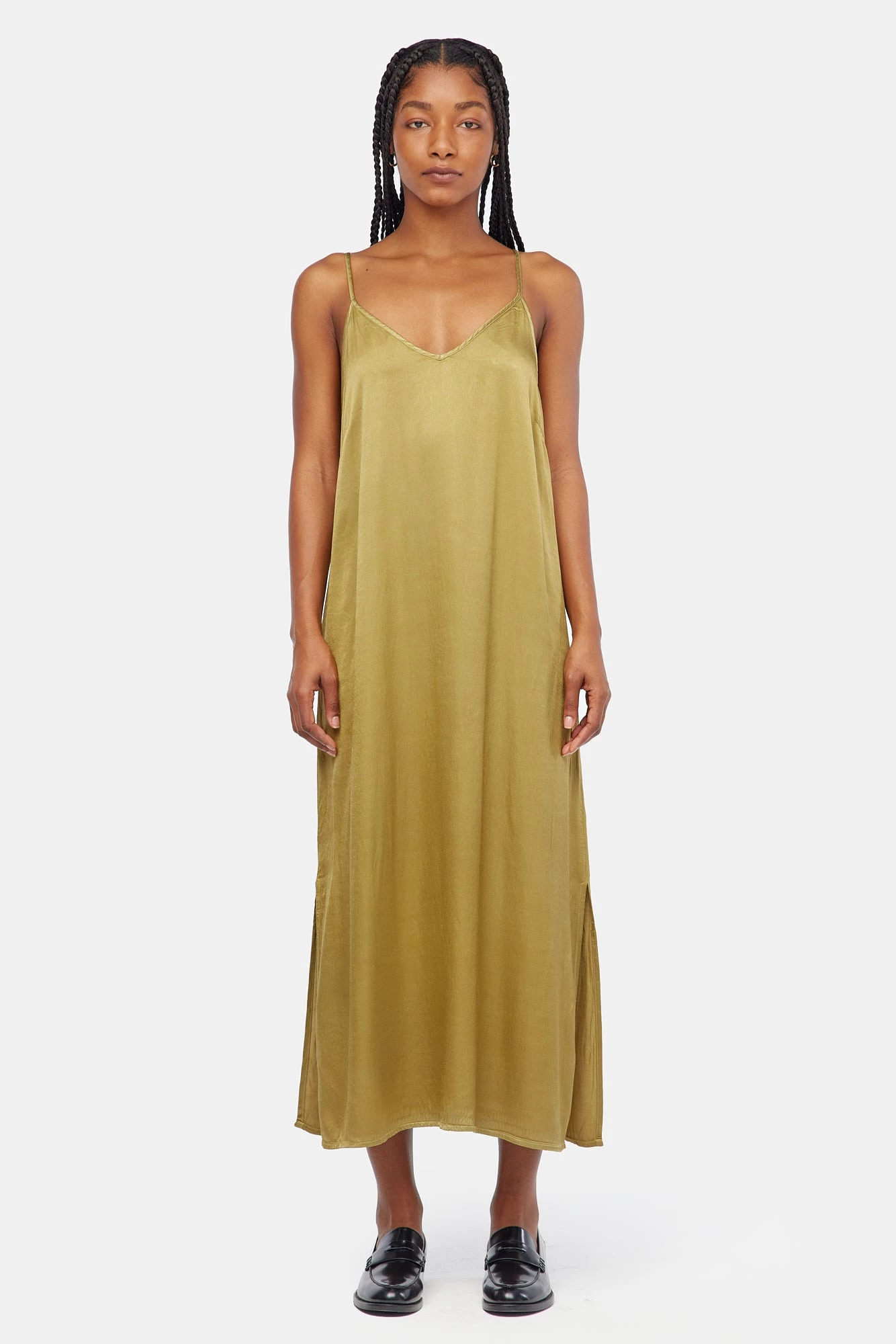 Hello classic satin slip of our dreams! A subtle V neckline with adjustable straps, side slits and midi length, made from our soft, luxurious Martini Satin.