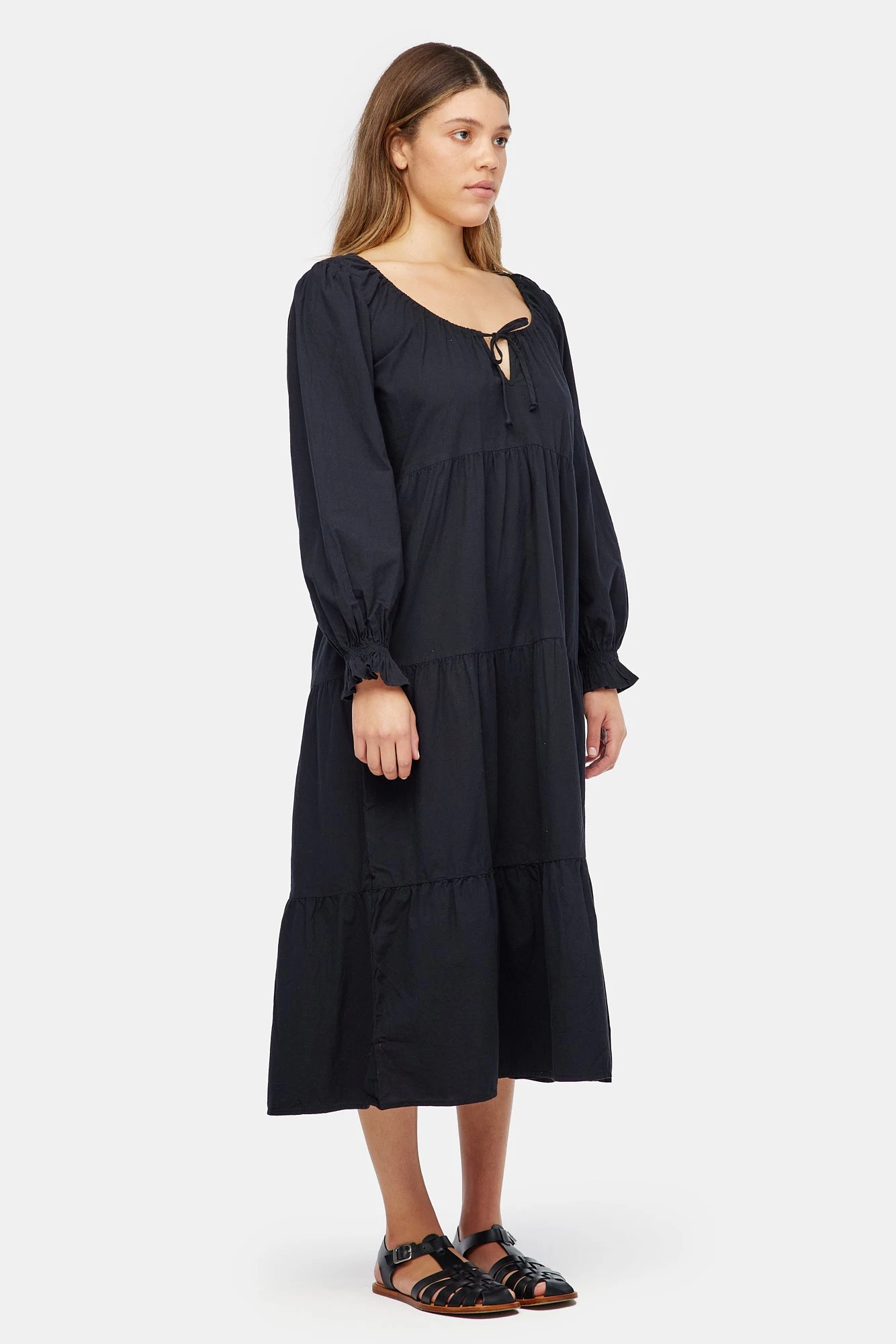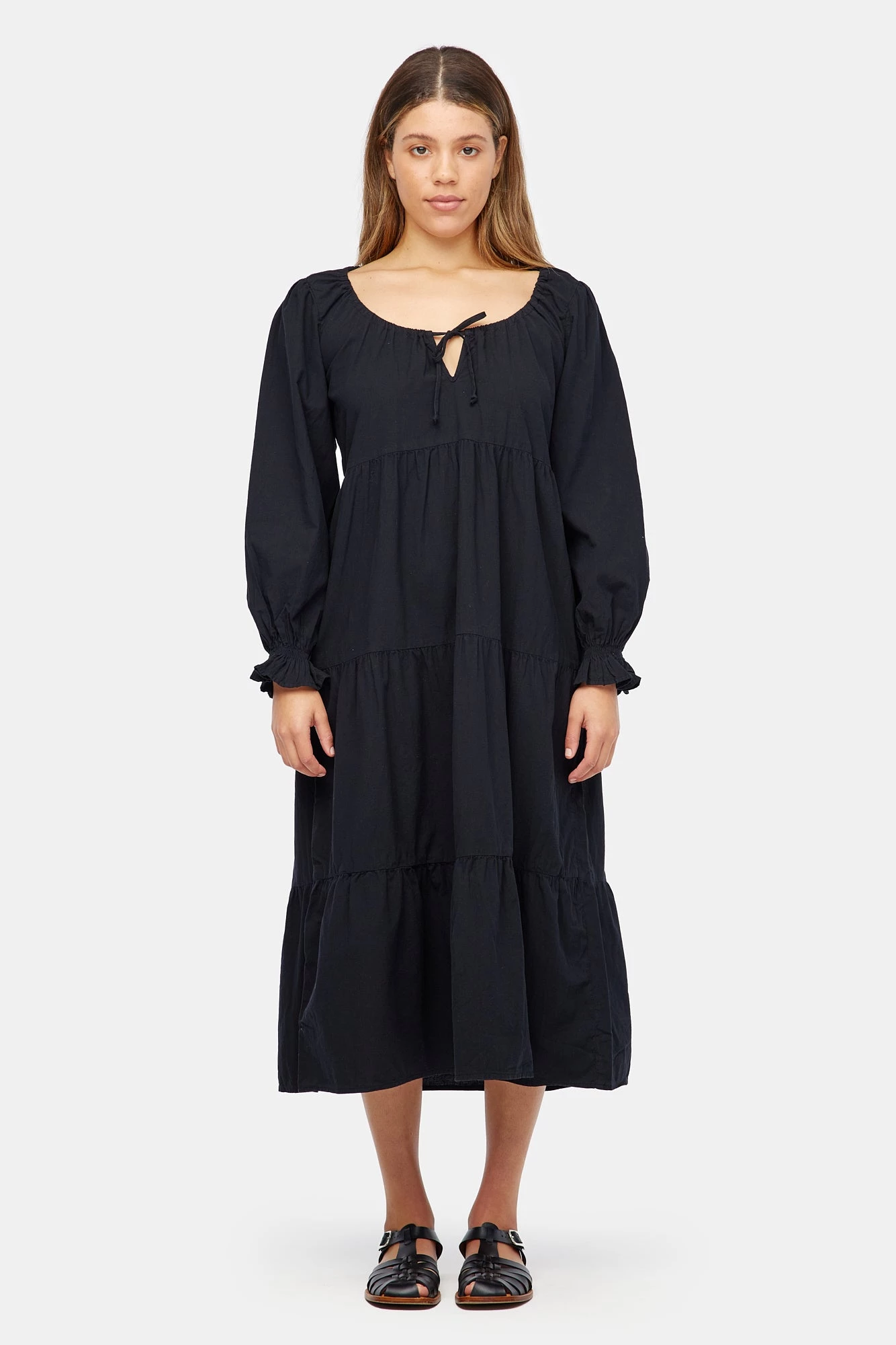 The everyday dress of your dreams has arrived. This wardrobe essential features voluminous tiers, puffed sleeves and an adjustable tie at the delicate keyhole neckline. The perfect piece to throw on and go. Made from our best selling crinkled cotton and garment dyed, giving it a super soft hand feel.