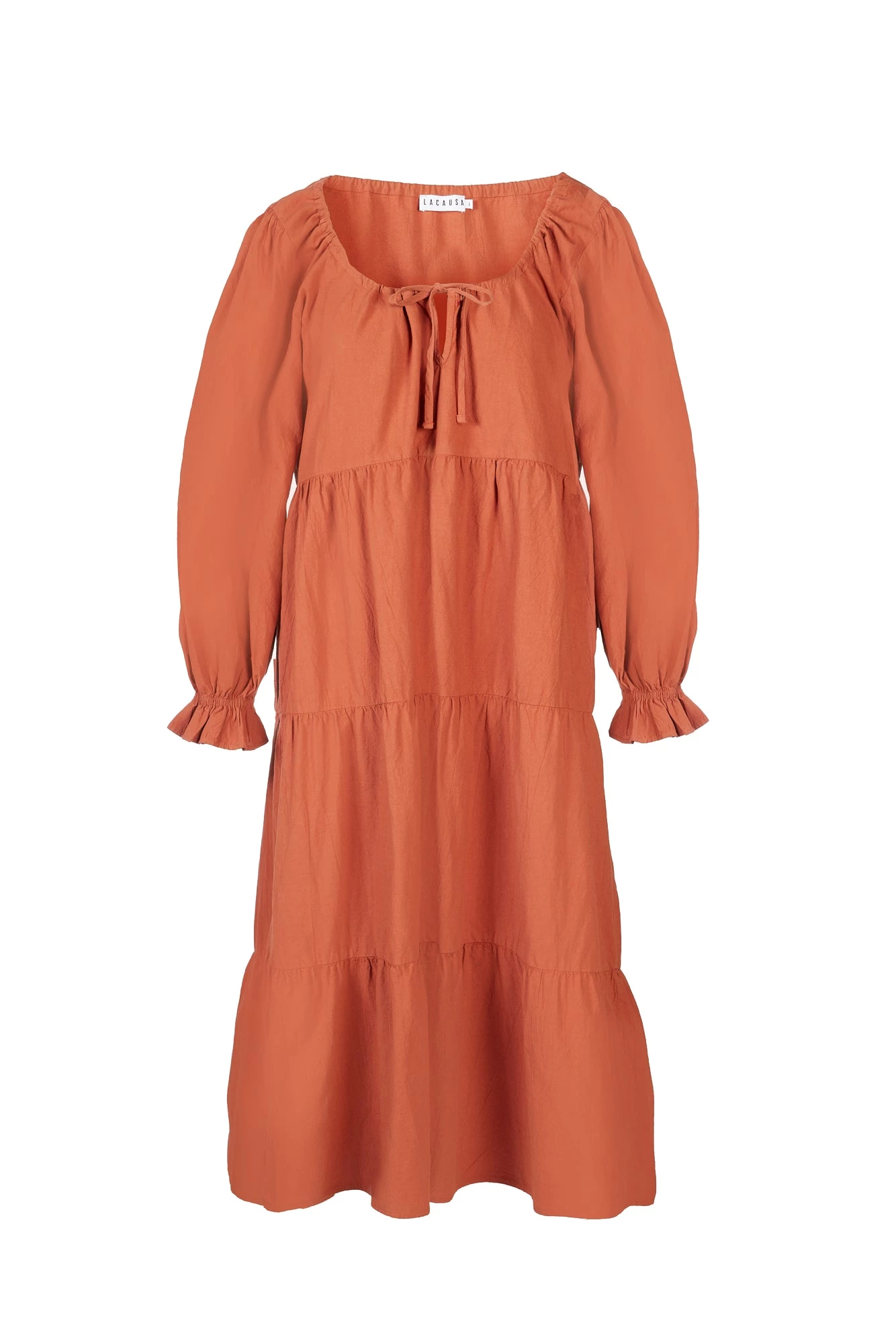The everyday dress of your dreams has arrived. This wardrobe essential features voluminous tiers, puffed sleeves and an adjustable tie at the delicate keyhole neckline. The perfect piece to throw on and go. Made from our best selling crinkled cotton and garment dyed, giving it a super soft hand feel.
