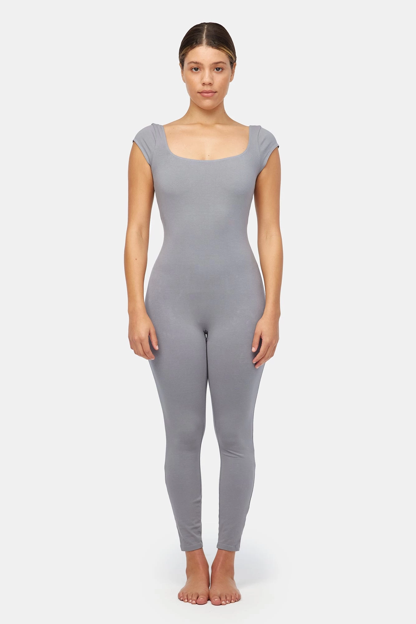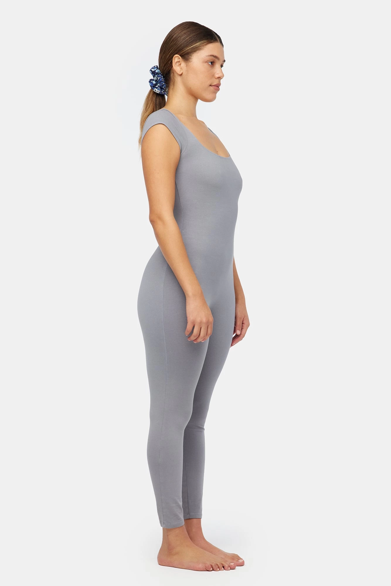 Your new yoga essential. A full length active unitard with cap sleeves and an open back, made from organic cotton spandex for ultimate stretch and buttery softness to support you while you move.