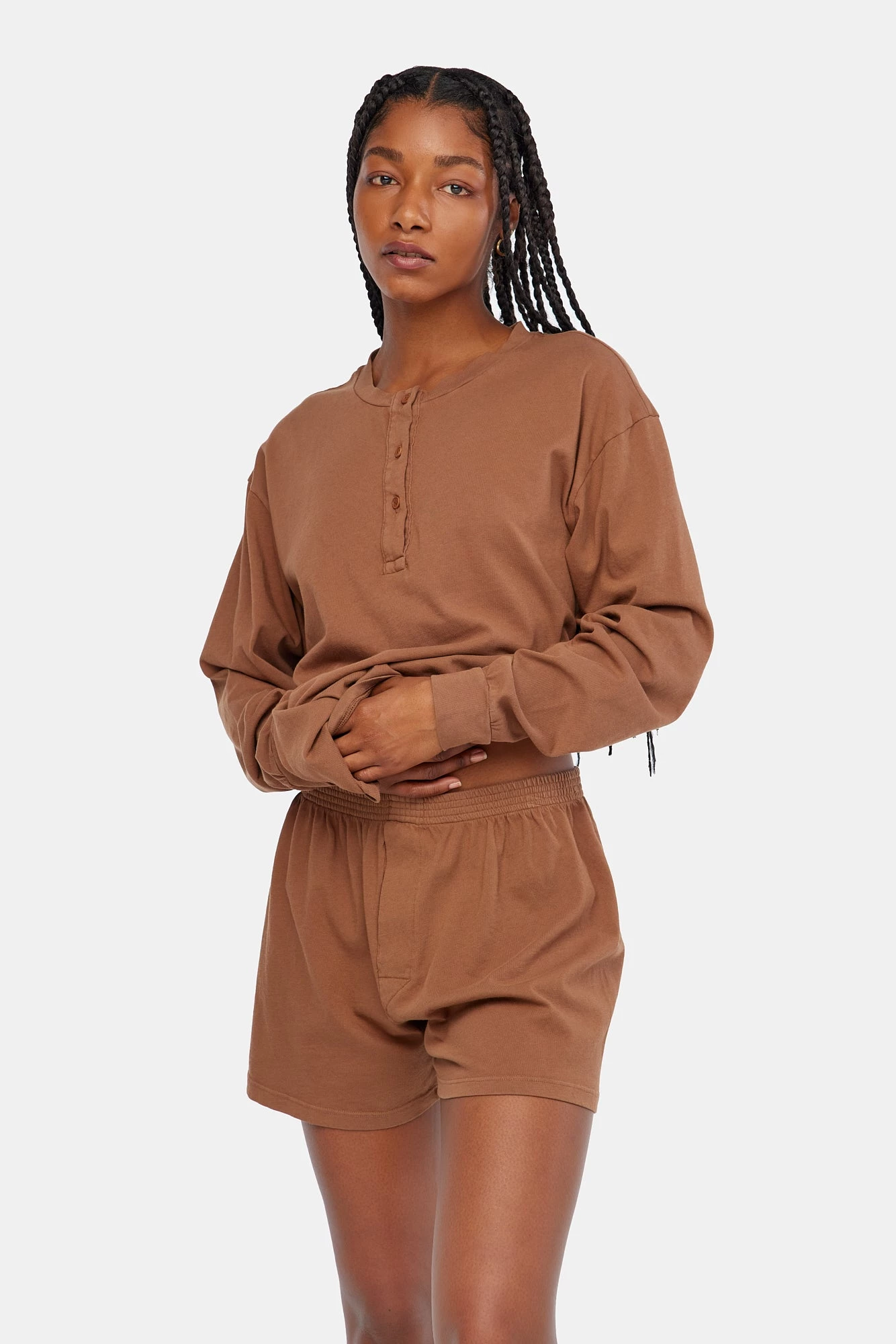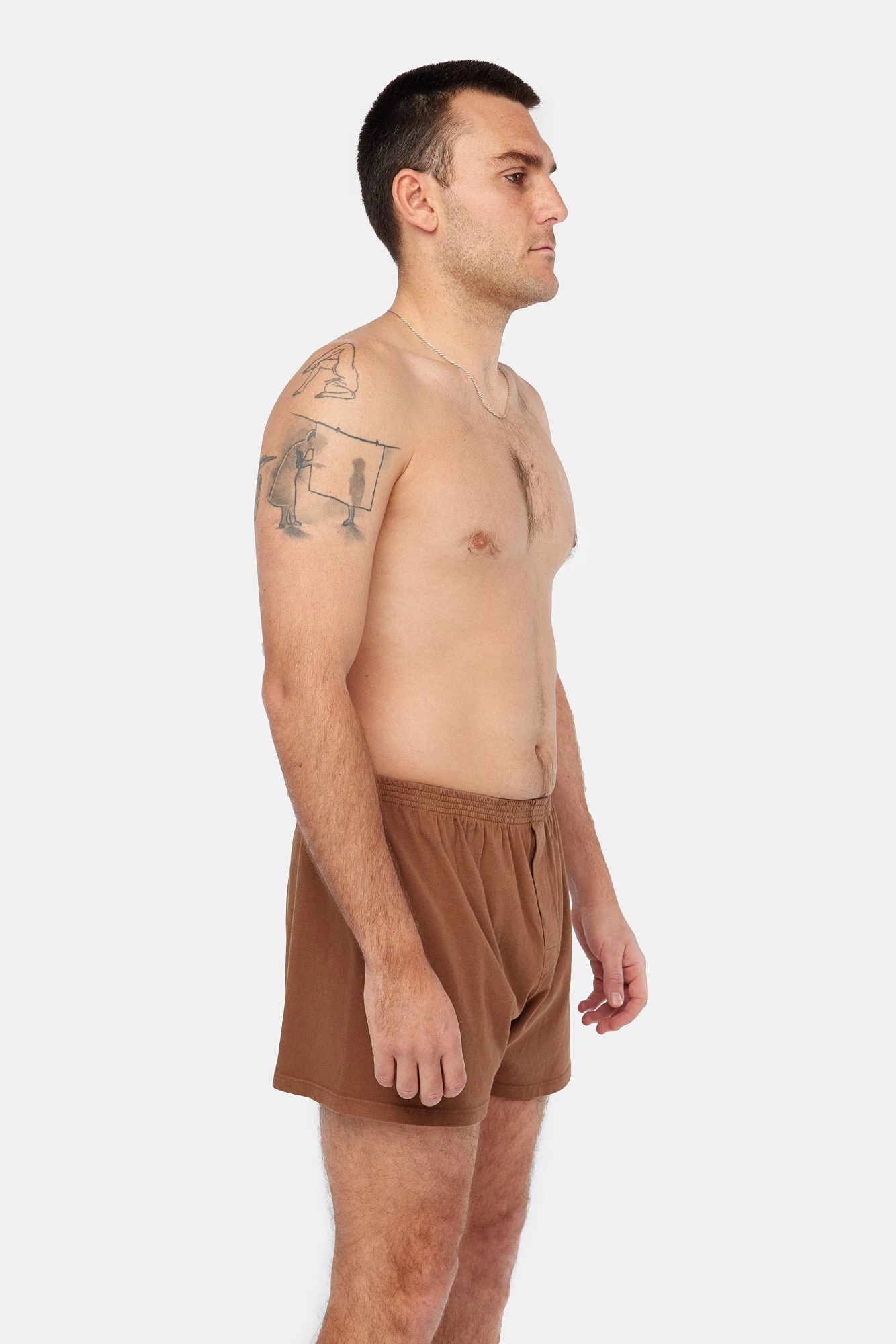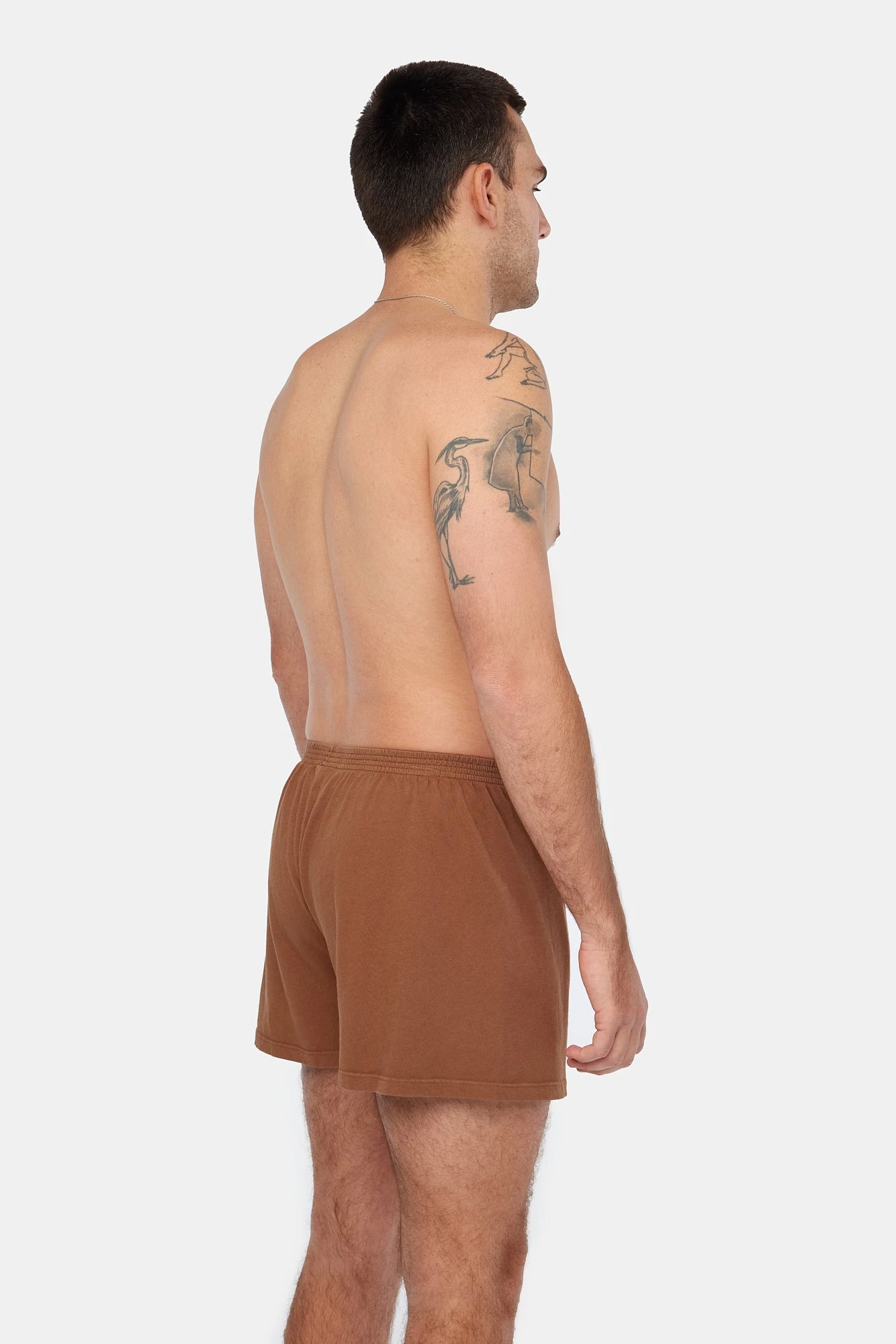 Medium weight organic cotton lounge boxers with elastic waistband. Garment dyed for added softness. Universal unisex fit for everybody.