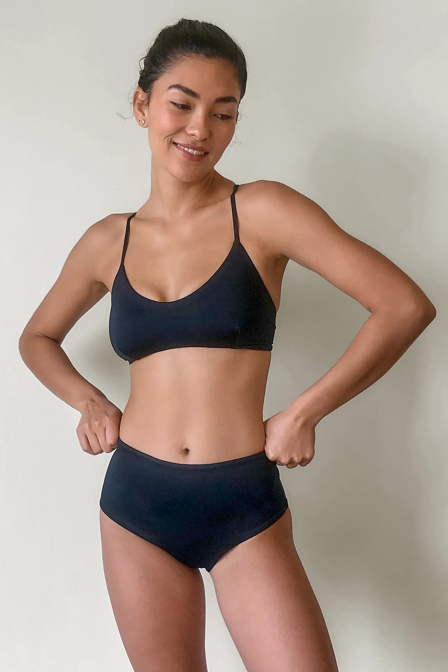 High Rise cheeky bottom with overall coverage. Double layered fabric and clean finish seams make this style comfortable while keeping you secure and never cutting in at the sides.