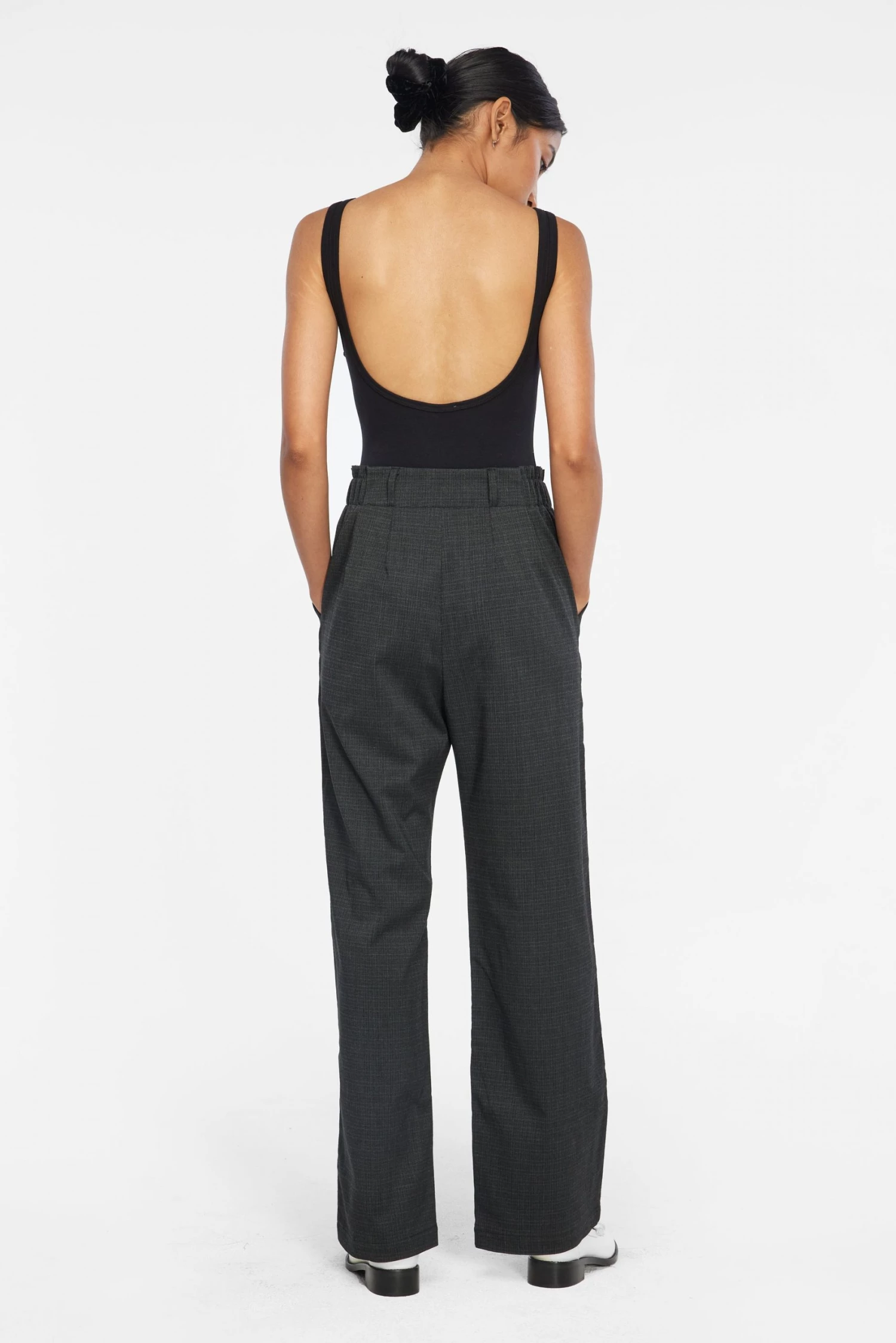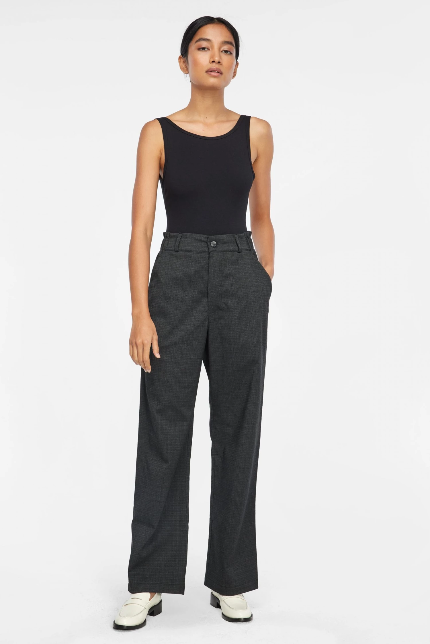 Menswear inspired trousers made responsibly from deadstock suiting fabric. High waist, full straight leg with elastic inserts at sides for added comfort.
