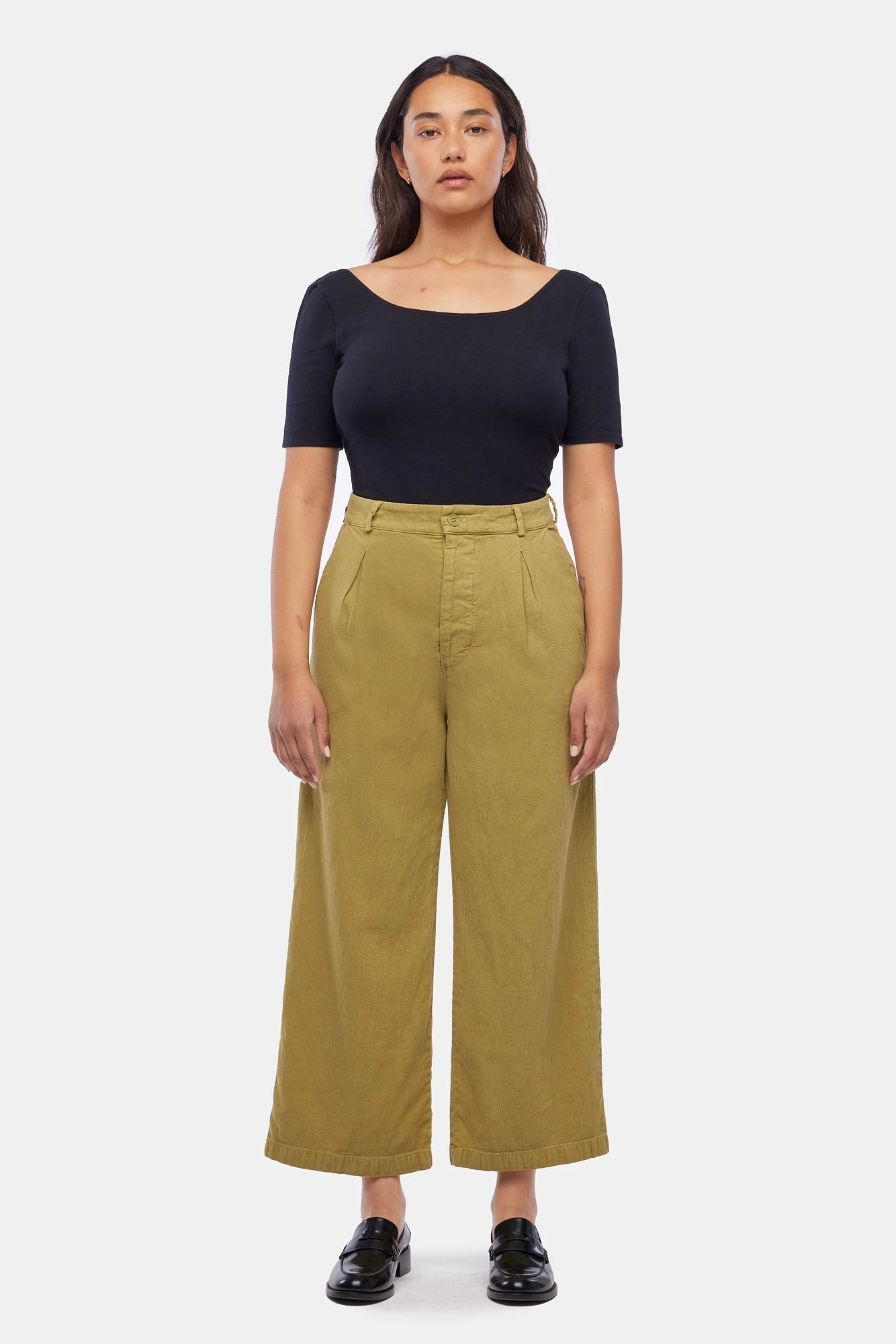 The Lola Trousers the same shape as our best selling Isabelle Trousers. With the slightest a-line pant in super soft, textured tencel. Rounded back pockets and subtle front pleats.