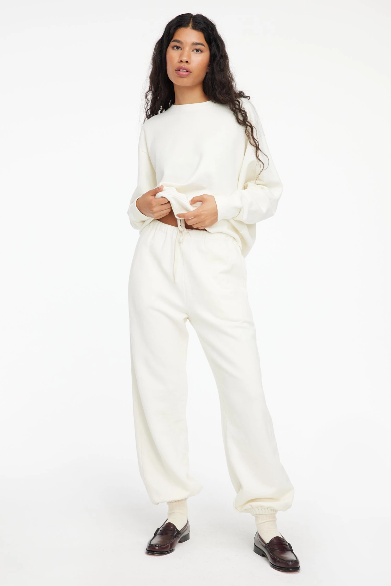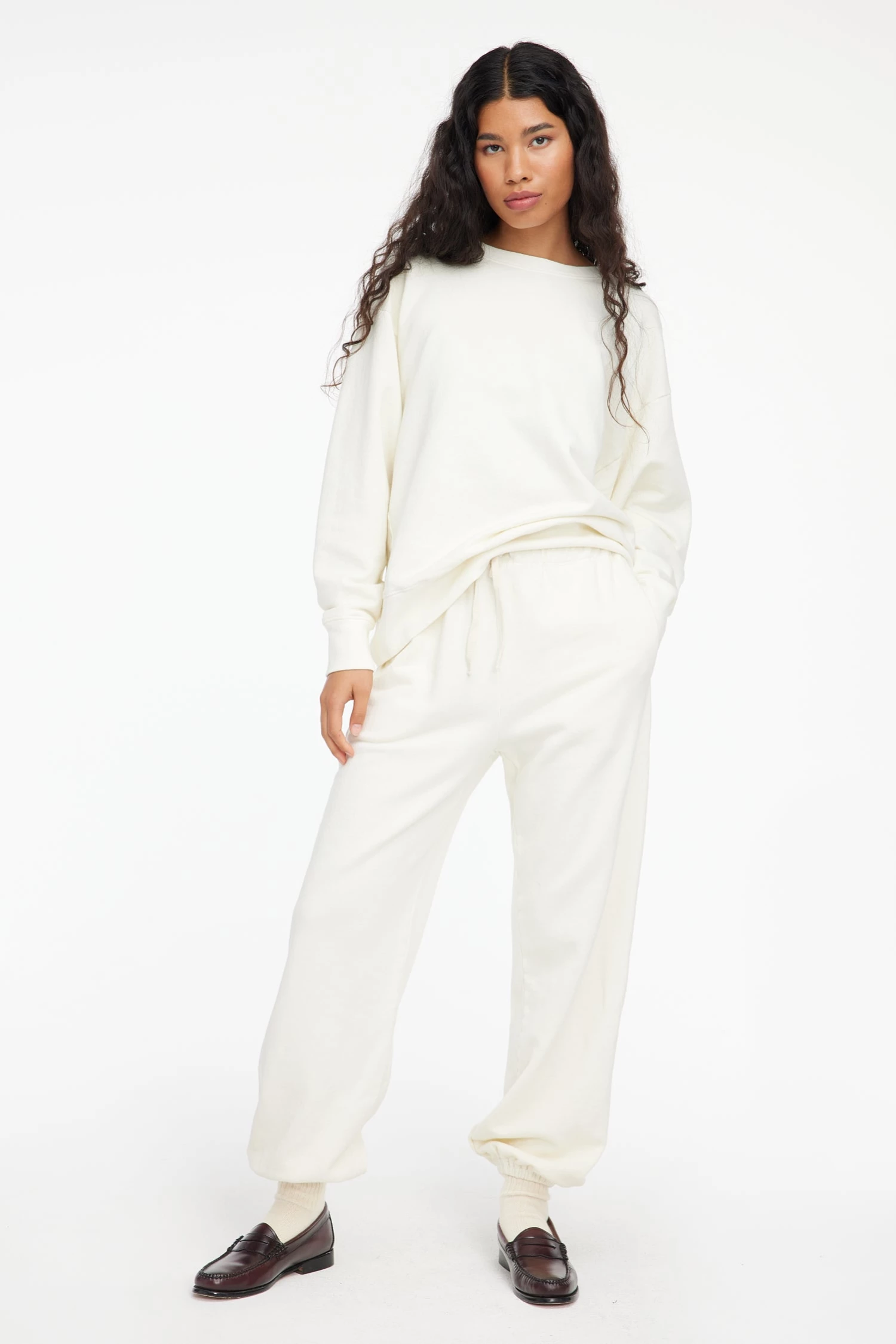 Super soft sweats made from organic cotton terry with side pockets and adjustable drawstring waistband. Pair with the Slater Sweatshirt for the ultimate cozy fit.