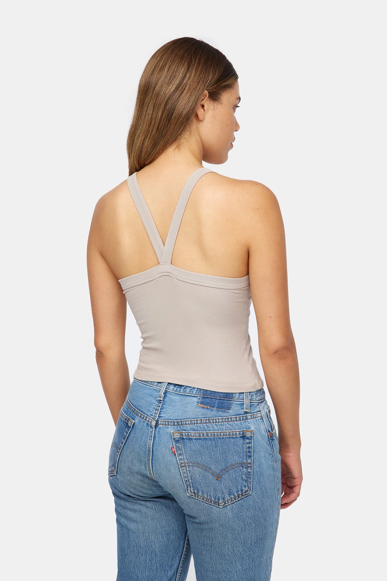 A wardrobe necessity. This classic tank features a scoop neckline and straps that meet in center back. Made from super soft and flattering micro modal rib that hugs the body in all the right places.