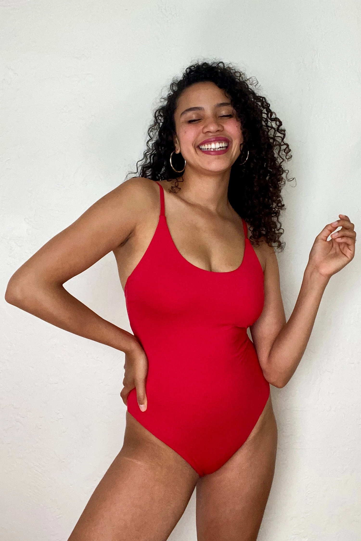 Our Riviera One Piece features a flattering, classic neckline and rounded low back, medium high cut legs, cheeky bottom with thin straps. Our smooth, recycled swim fabric is double layered with clean finish seams to hold the body tight and comfortably.