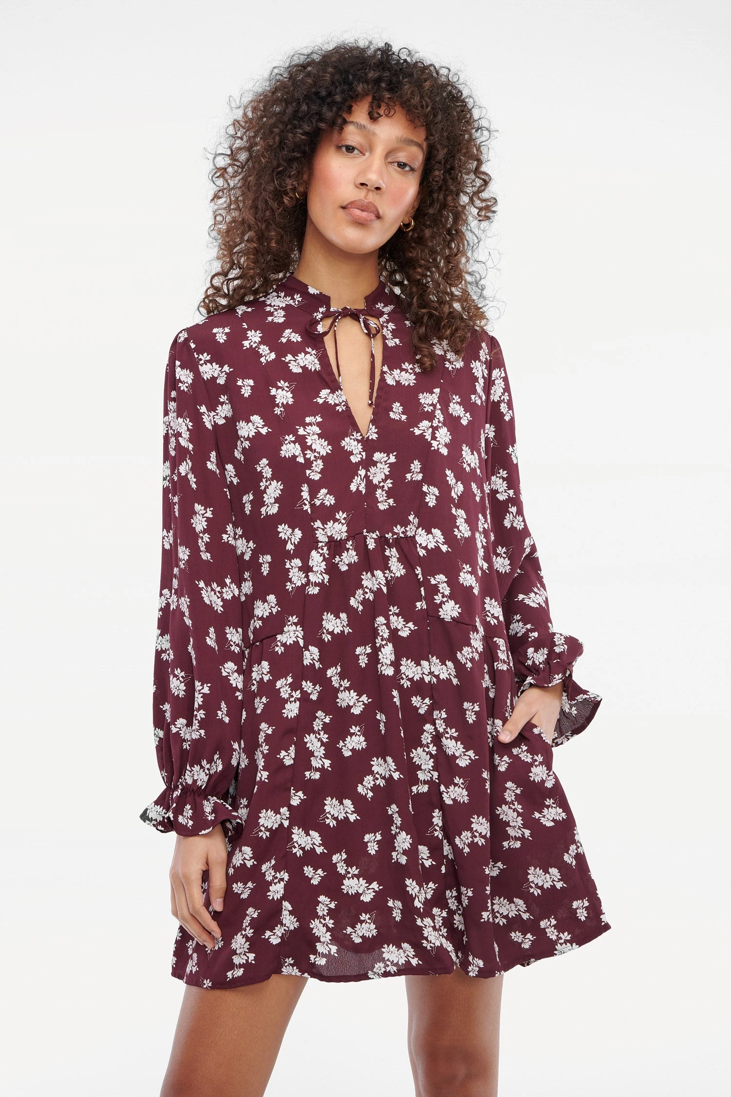 The Mariposa Mini is a classic, everyday mini dress with a romantic twist. Made in a beautiful, draped deadstock floral print with a tie at neck, puffed sleeves, shirred panels and pockets for extra comfort. The perfect dress to twirl around a party at or stay cozy in at home.