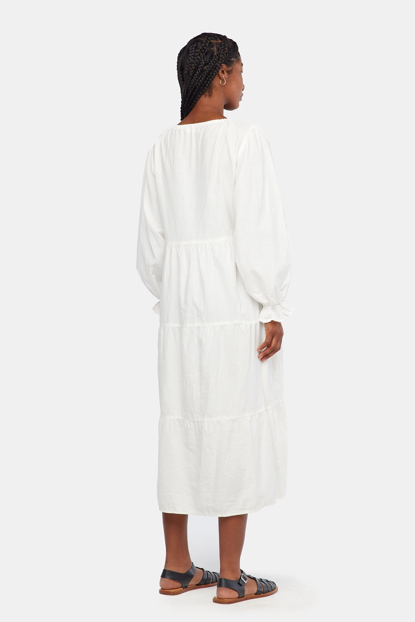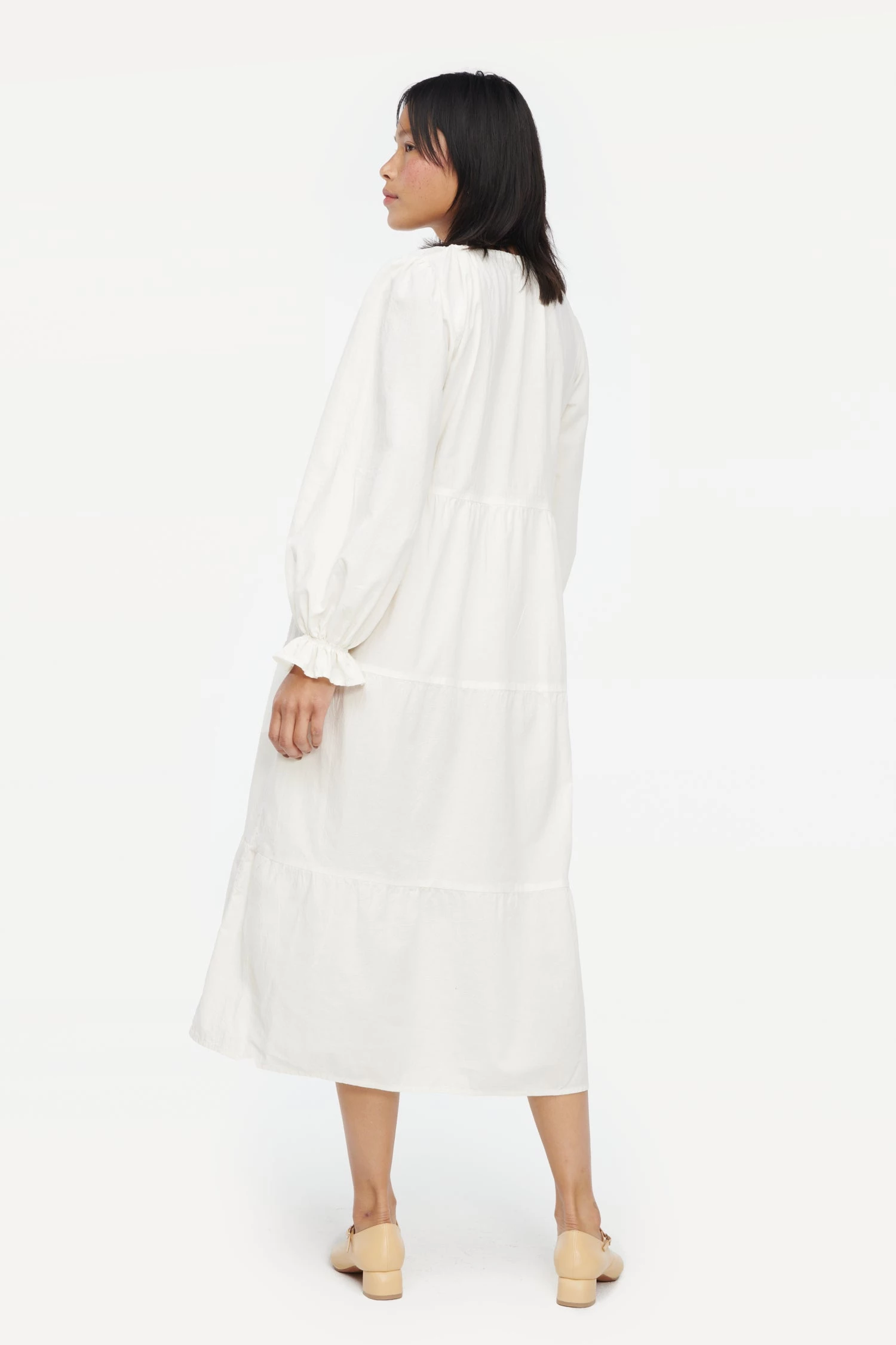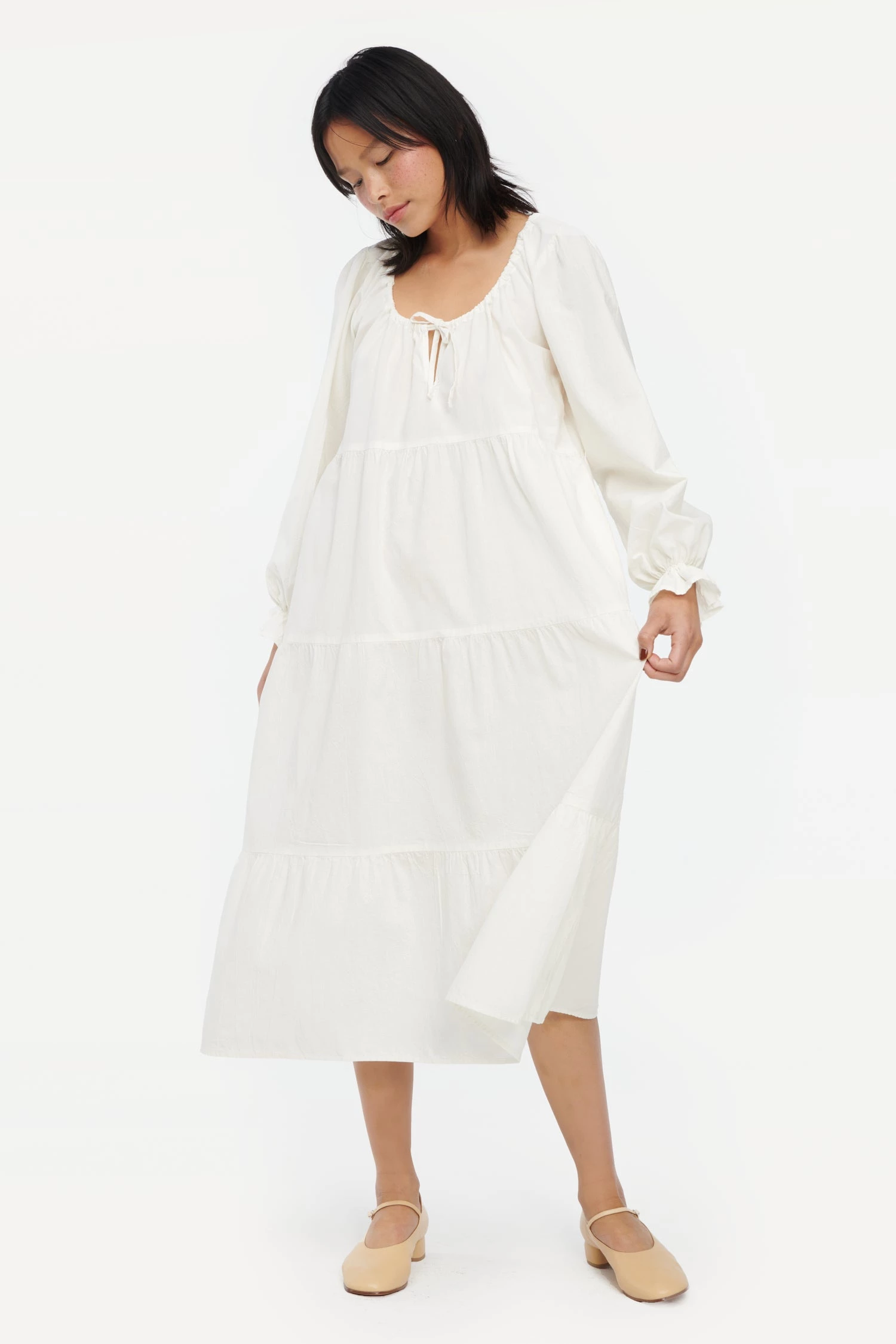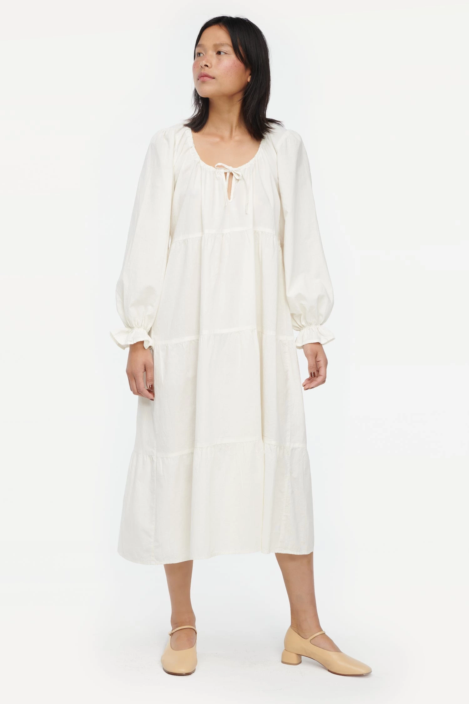 The everyday dress of your dreams has arrived. This wardrobe essential features voluminous tiers, puffed sleeves and an adjustable tie at the delicate keyhole neckline. The perfect piece to throw on and go. Made from our best selling crinkled cotton and garment dyed, giving it a super soft hand feel.