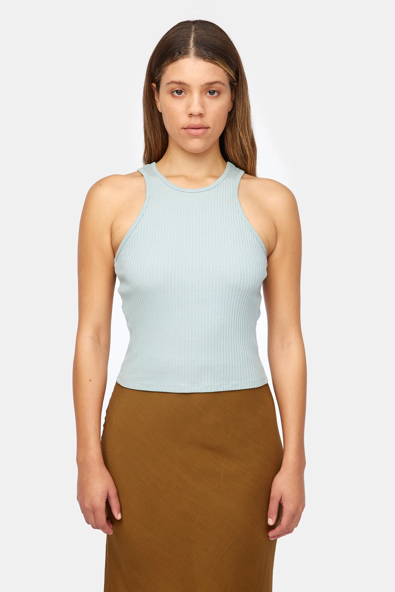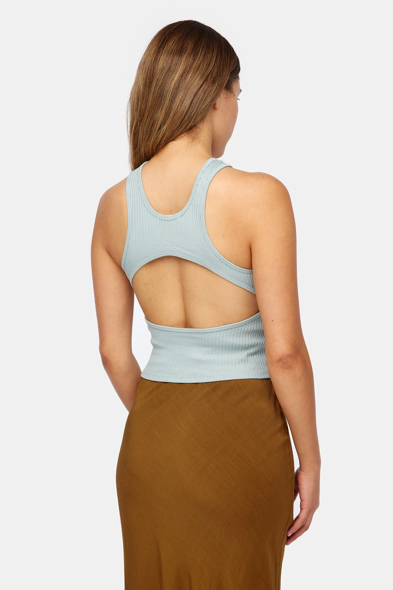 A classic ribbed tank with a peek-a-boo cutout in the back.