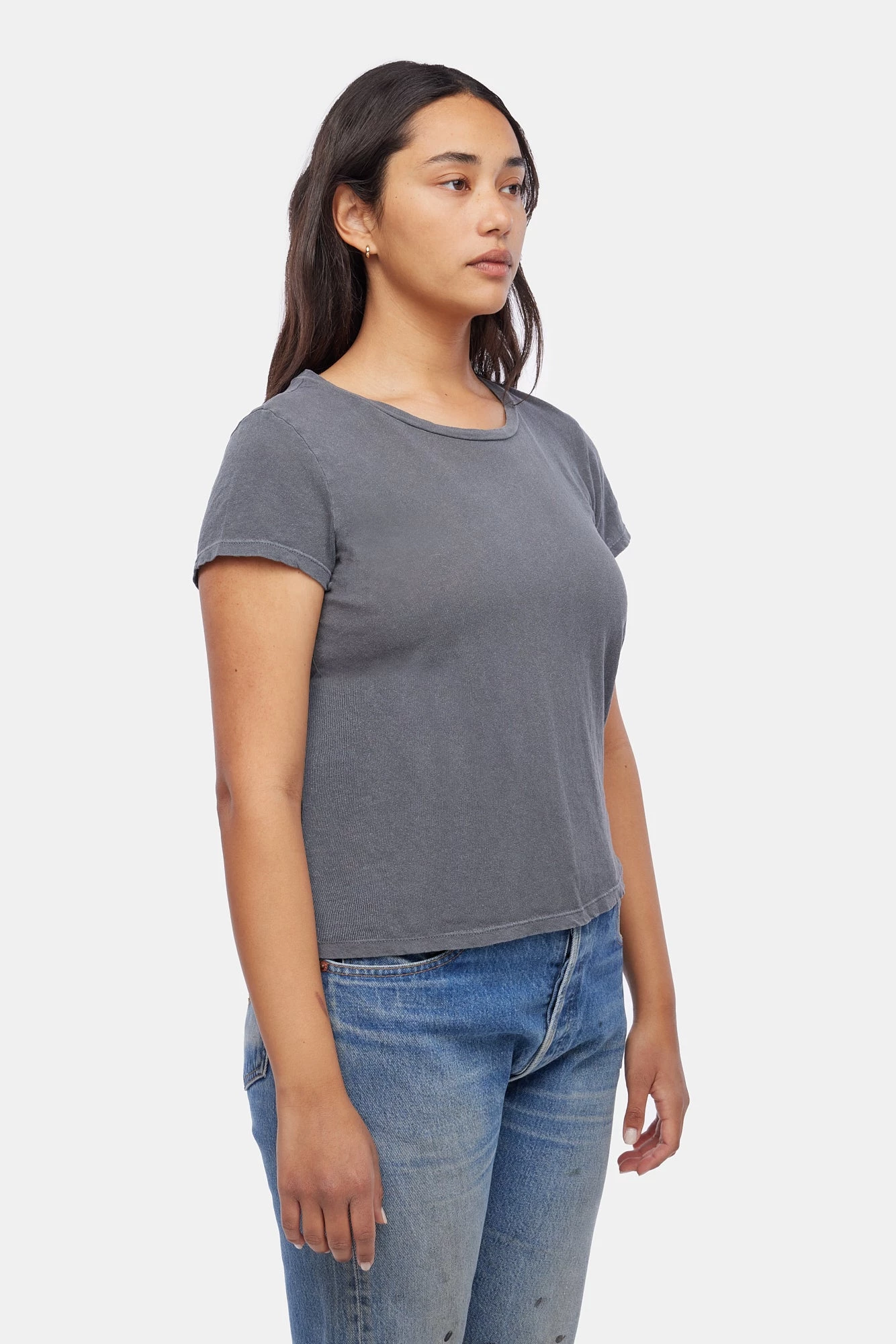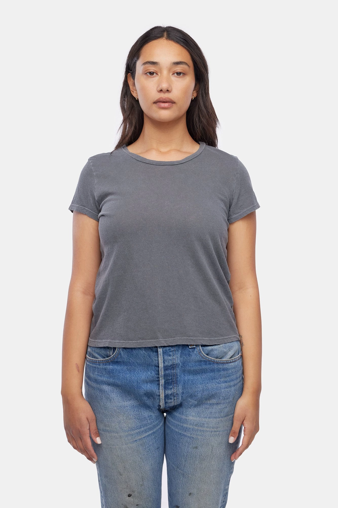 Slate is a pigment garment dye that is inspired by our favorite faded-black vintage tees.