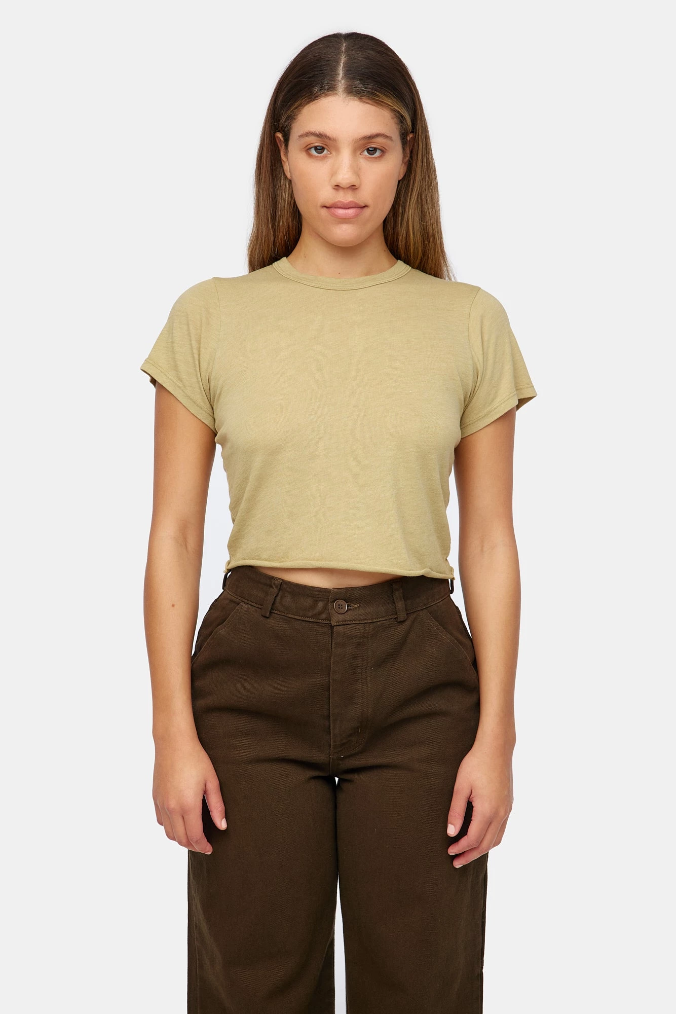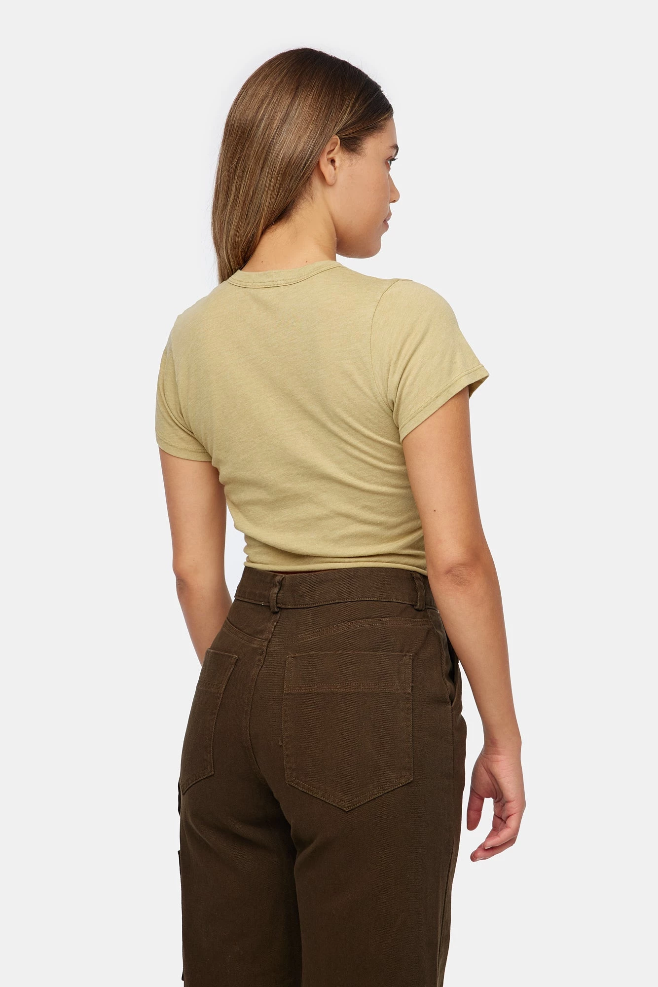 Hello baby tee of our dreams. This super soft shrunken tee is made of an organic cotton, recycled poly blend that gives it a slightly heathered look and the softest handfeel.