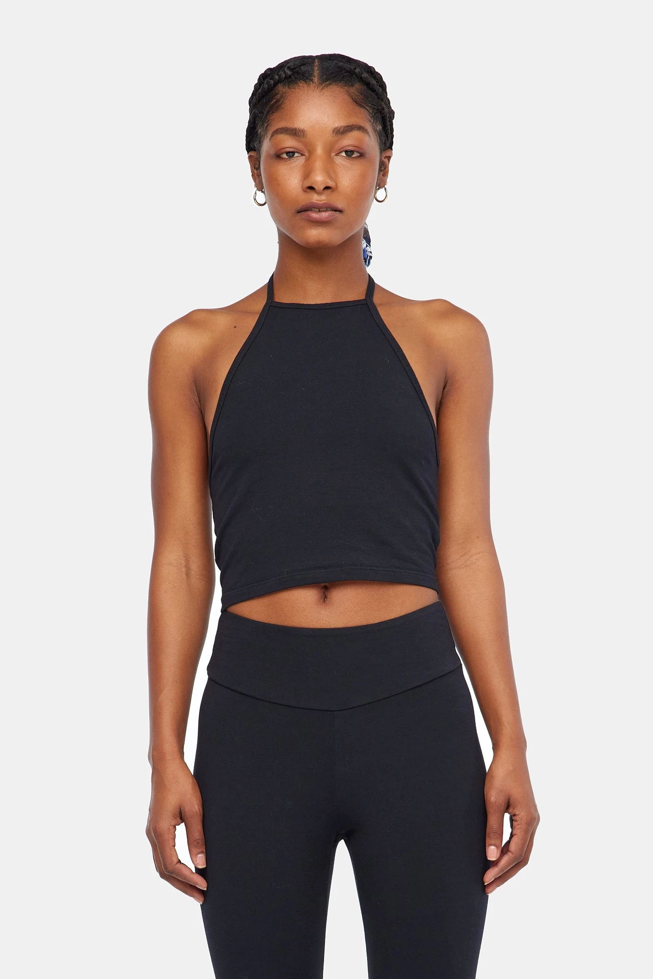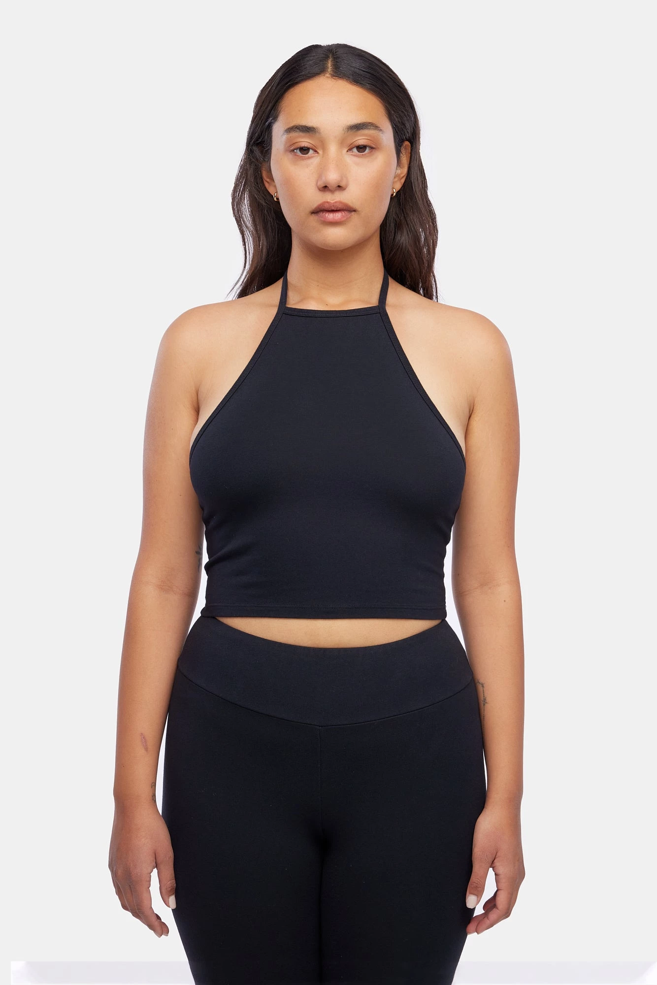 A 90s inspired fitted halter for all your movement needs. Made from Organic Flex, an organic cotton spandex blend for ultimate stretch and buttery softness to support you while you move.