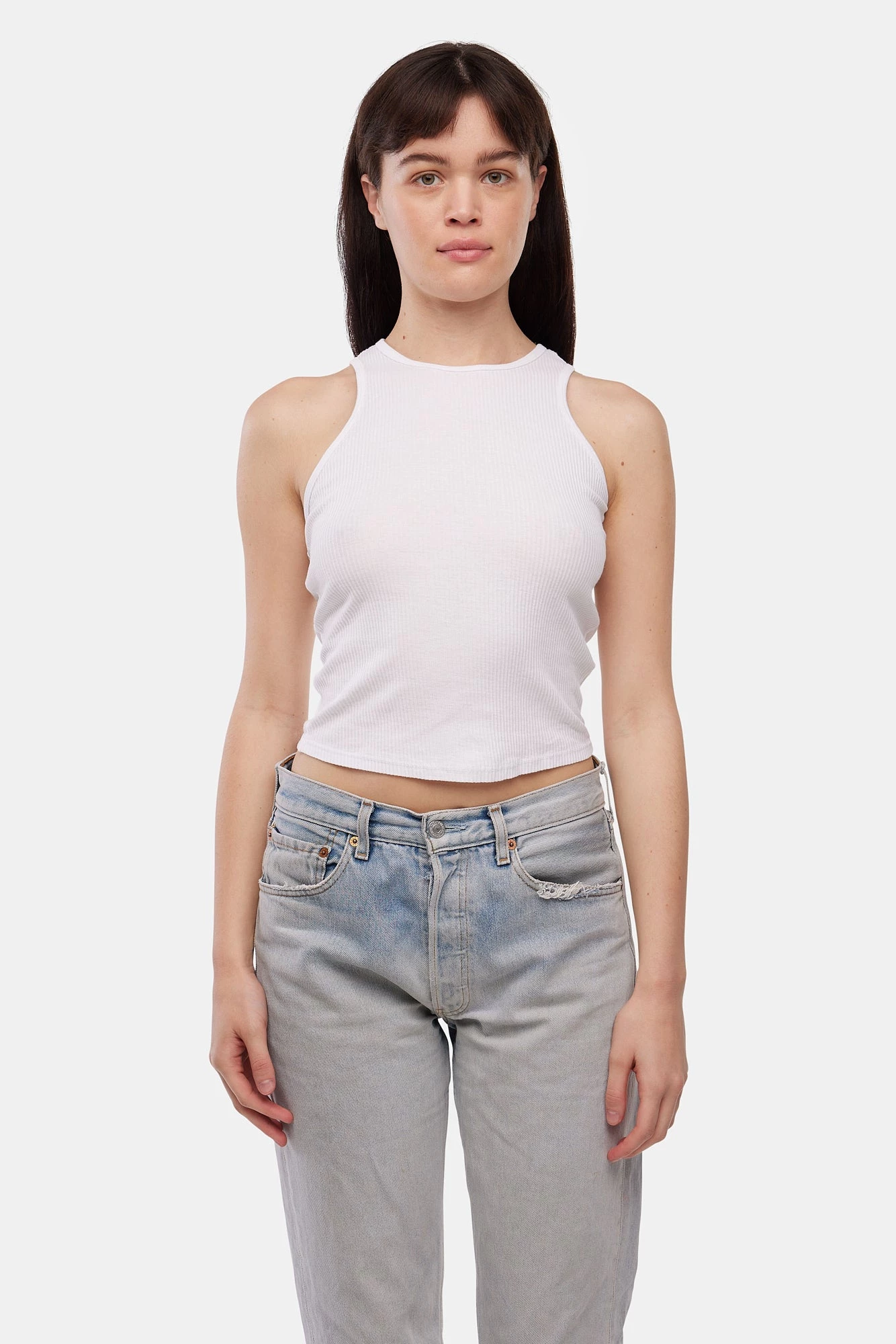Our newest addition to the Uniform collection. The Zoe tank is made from our best selling cotton rib with a high, narrow neckline and fitted body. Inspired by the perfect vintage undershirt.